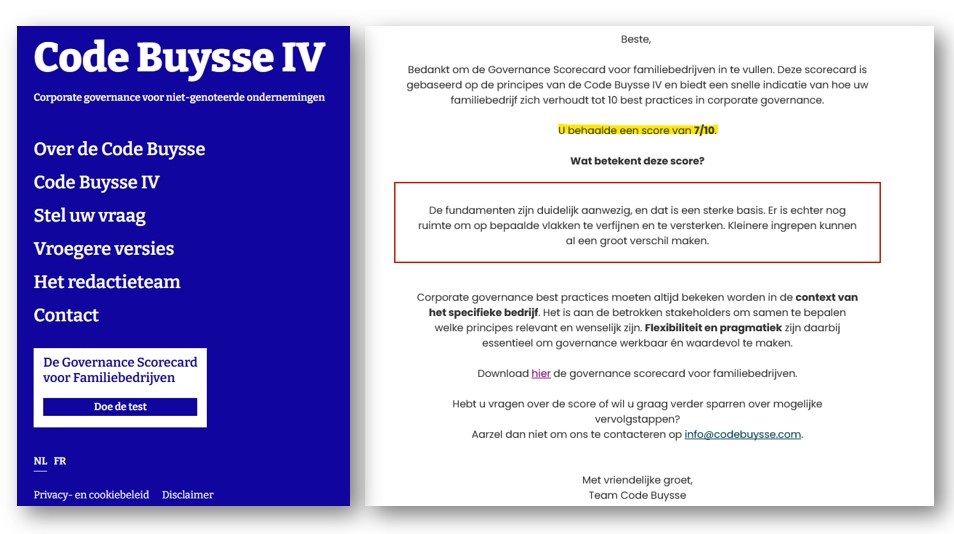 Doe de test hier :Governance Scorecard voor familiebedrijven | Code Buysse
