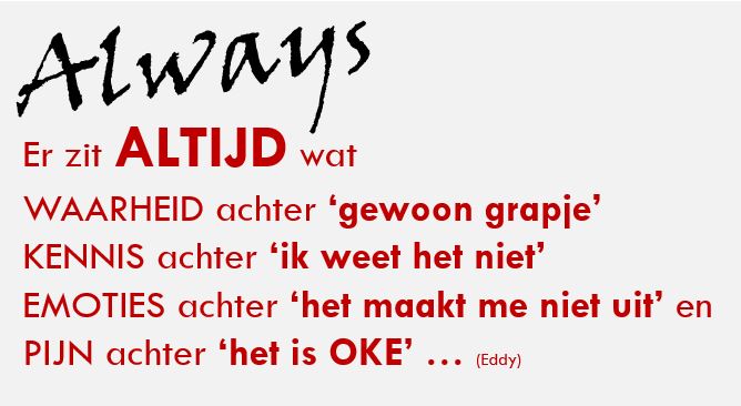 Achter elke INTIMIDERENDE boodschap vind je een MENS met ONVERVULDE BEHOEFTEN die een beroep op ons doet…